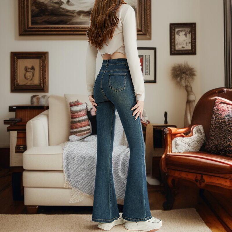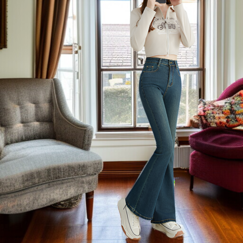 小さめハイウエストワイドジーンズ女性春春スリム細めマイクロフレアワイドパンツ-オンラインストア